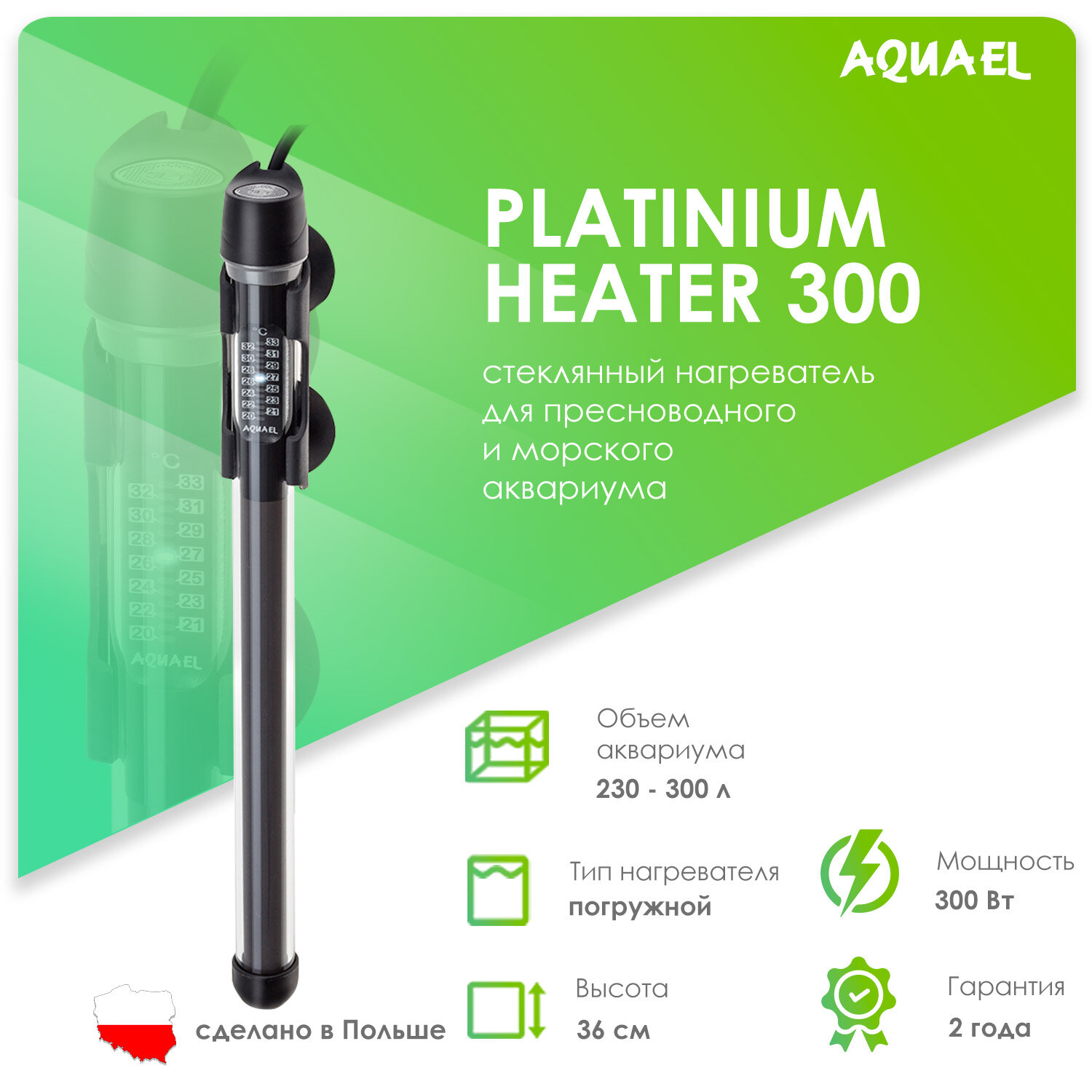 Нагреватель AQUAEL PLATINIUM HEATER 300 Вт для аквариума 230 - 300 л (стеклянный, регулируемый)