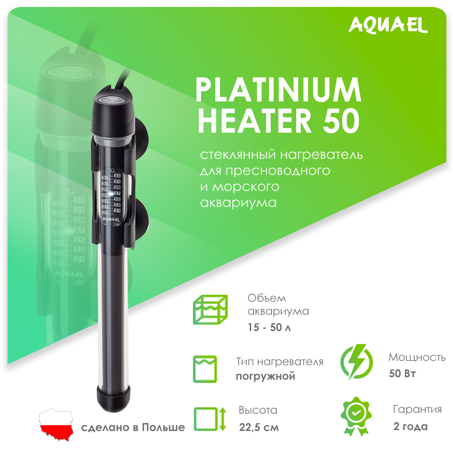 Нагреватель AQUAEL PLATINIUM HEATER 50 Вт для аквариума 15 - 50 л (стеклянный, регулируемый) интересное: