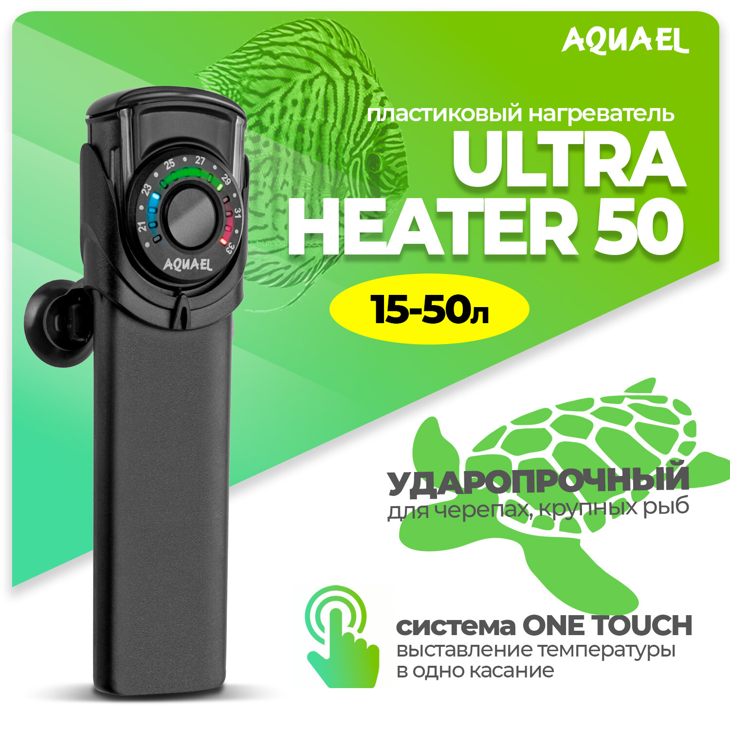 Нагреватель AQUAEL ULTRA HEATER 50 Вт для аквариума 15 - 50 л (пластиковый, регулируемый) интересное: