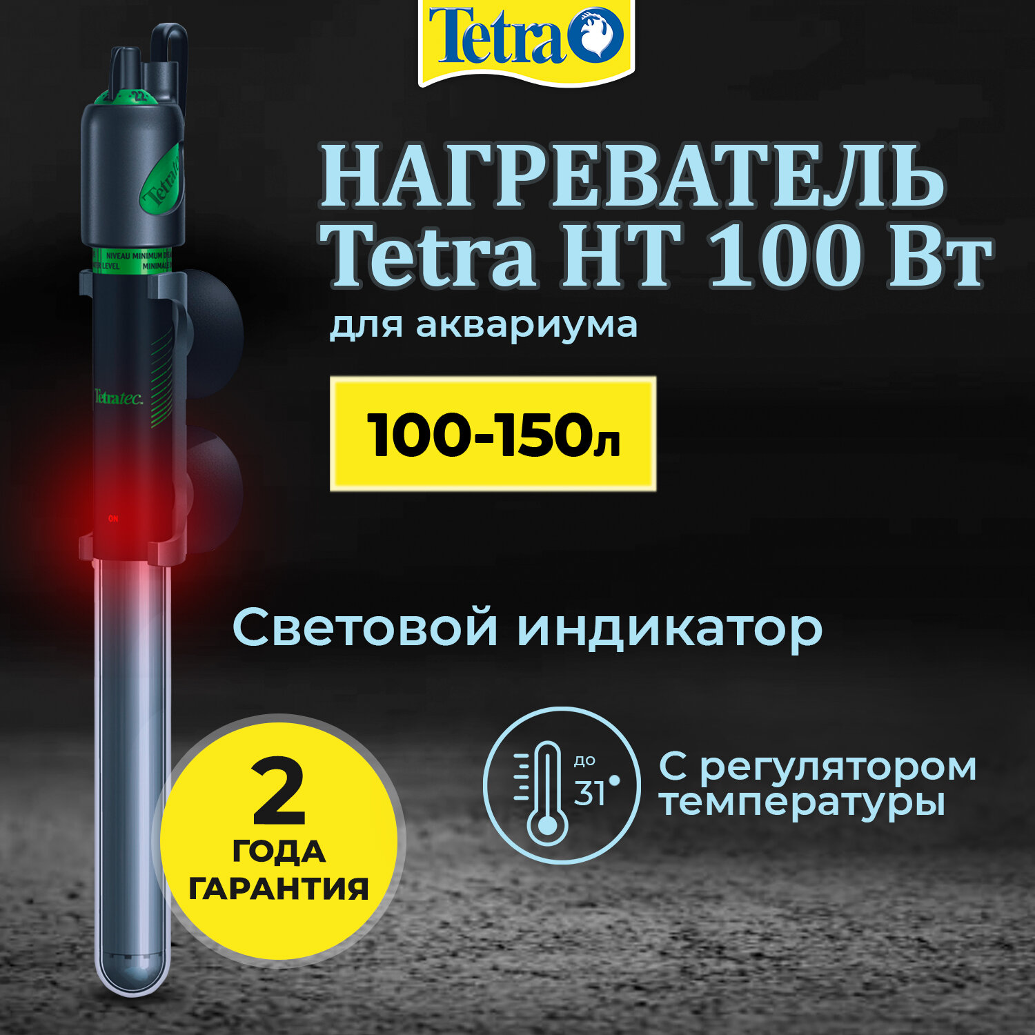 Нагреватель Tetra HT 100 Вт для аквариума 100-150 л (стеклянный, регулируемый)