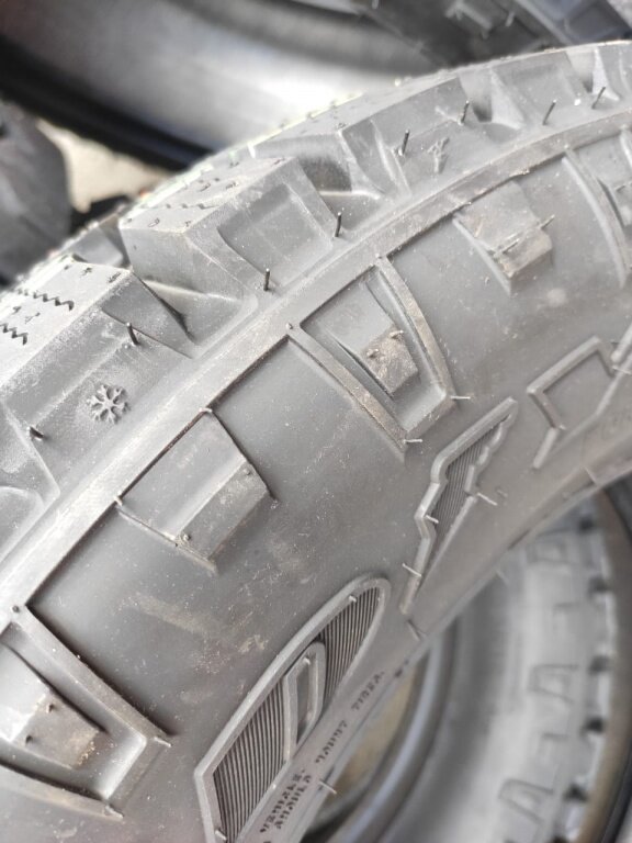| Плюсы: | Резина очень комфортная. Шума нет даже при высоких скоростях 140 км/ч, не смотря на то что протектор практически как на м/т. Резина мягкая хорошо держит дорогу как летом так и зимой по мерзлому асфальту и укатанному снегу. По льду не хватает шипов.. хотя дырки под шипы есть. Отличные боковые грунтозцепы. Хорошо работают как в рыхлом снегу так и стравленными на грязюке. Резина очень туго садится на диск и при движении на низком давлении не разбортируется. Хорошо балансируется. |