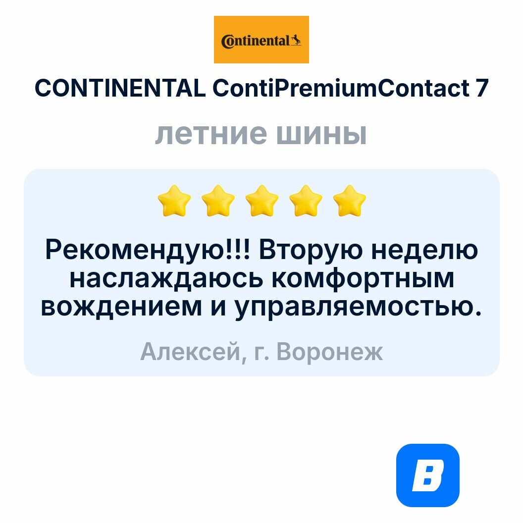 В поворотах колёса как приколочены к асфальту. На автобанах без ограничения проблем не вызывала, курсовая устойчивость на 5+. Откатала с 2013 по 2019 без вопросов, качество супер. Но. Она не для грунтовок. Совсем. Шумит прилично по дорогам без покрытия. На сильно шероховатом асфальте тоже шумная. В дождь на траву съезжать не стоит, будет шлифовать и можно на этой поляне так и остаться. При температуре ниже +7? начинает шуметь даже на хорошем покрытии, но сцепных свойств не теряет и так же великолепно держит дорогу, как и в +40?. В колею на ней лучше не влетать, плохо себя в ней чувствует. Для оптимальной работы покрышки необходимо её прогреть. Начинает ещё лучше держать и ещё крепче липнуть к асфальту. Сравнивал с последним 6-м контиком - разница есть. Не в пользу 1-х конти. Взял 6-е, тем более они дешевле. |