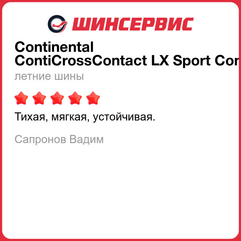 СохранитьЛетняя шина Continental ContiCrossContact LX Sport ContiSilent (275/45 R20 110V) интересное: