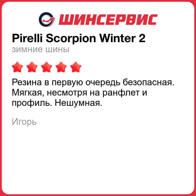 Ниже Вы можете прочитать отзывы на Зимняя шина Pirelli Scorpion Winter 2 235/50R20 104V, ознакомится с подробными характеристиками, посмотреть интересные обзоры и фотографии на Зимняя шина Pirelli Scorpion Winter 2 235/50R20 104V.