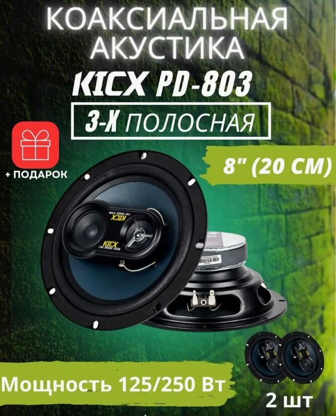 Автомобильная акустика динамики Kicx 3-x полосная коаксиальная акустика PD-803 интересное: