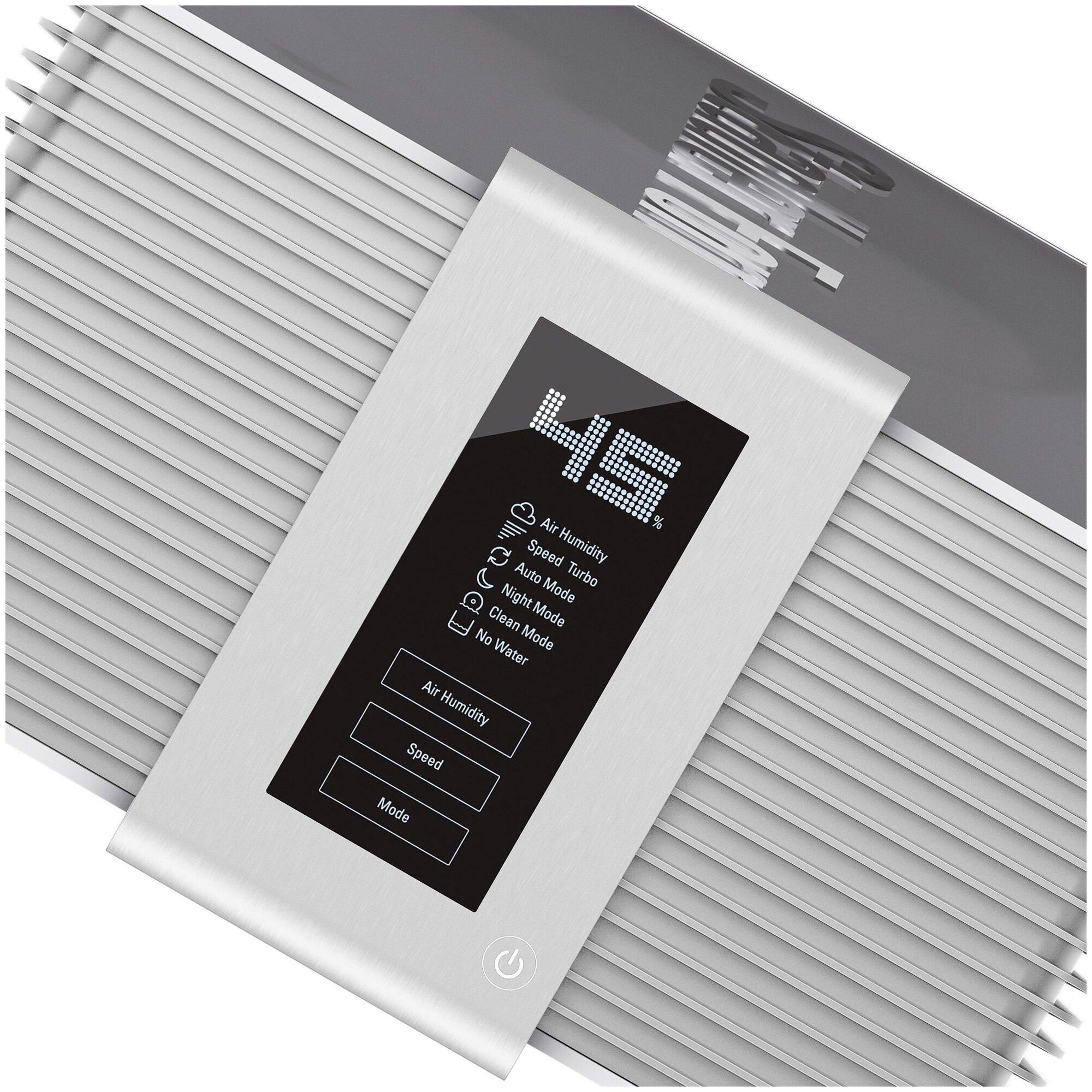 Небольшой по габаритам (но, конечно, смотрите размеры в описании, чтобы не стал для вас сюрпризом) Удобное сенсорное управление. Автоотключающийся дисплей (кроме показаний % влажности, об этом ниже) Не шумный (на низких скоростях, а больше и не надо). Быстро набирает заданную влажность. Не издает звуков при нажатии кнопок. Всего два расходника: серебрянная штуковинка (менять раз в год) и фильтр для смягчения воды менять примерно через 60 дней, см. руководство (тк у нас в Петербурге очень мягкая вода и тест-полоска, прилагаемая к руководству не показала намека на жесткость можно было фильтр не ставить, но раз уж был - установил). |