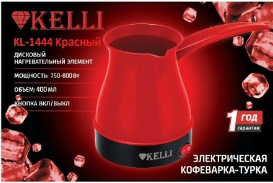 Электрическая турка Kelli KL-1444, 0,4 л, 750-800 Вт, пластик, красный