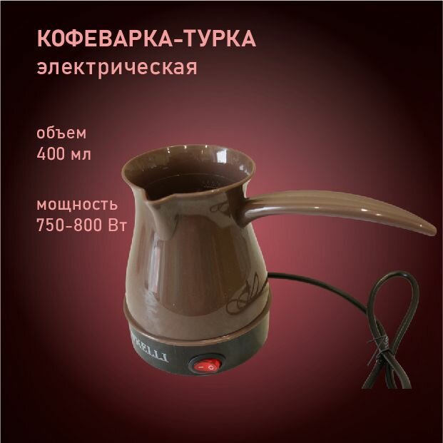 Электрическая турка Kelli KL-1444, 0,4 л, 750-800 Вт, пластик, красный