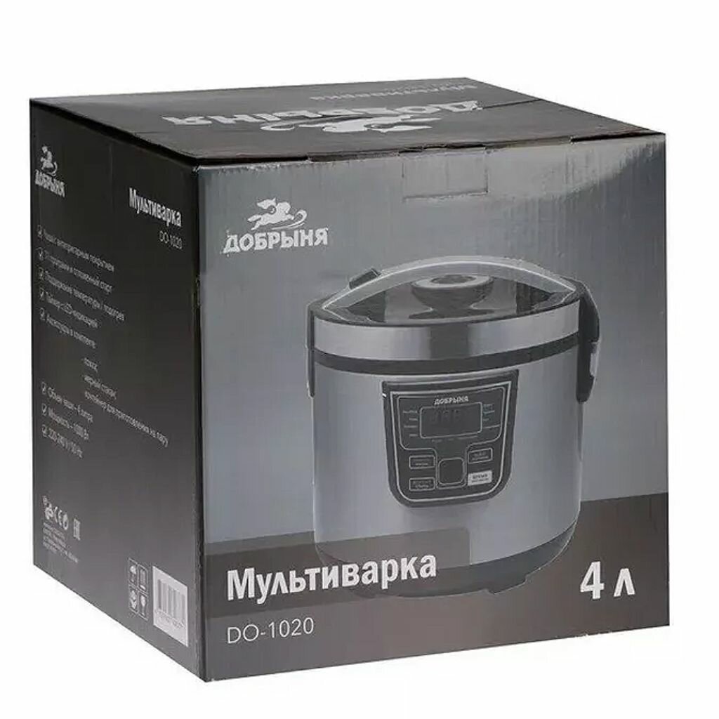 СохранитьМультиварка «Добрыня» DO-1020, мощность 1000 Вт Ватт, объём чаши: 4 литра, 11 режимов, антипригарное покрытие чаши,Программы приготовления: выпечка, жарка, йогурт, крупа, молочная каша, плов, приготовление на пару, тесто, тушение(OL) интересное: