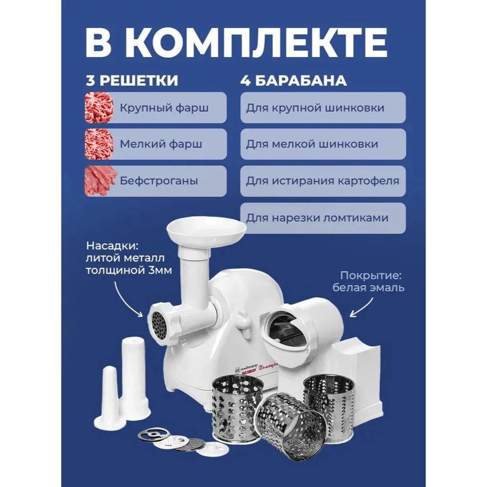 Мясорубка Белвар Помощница КЭМ-П2У 302-06 с шинковкой, 1500Вт, реверс
