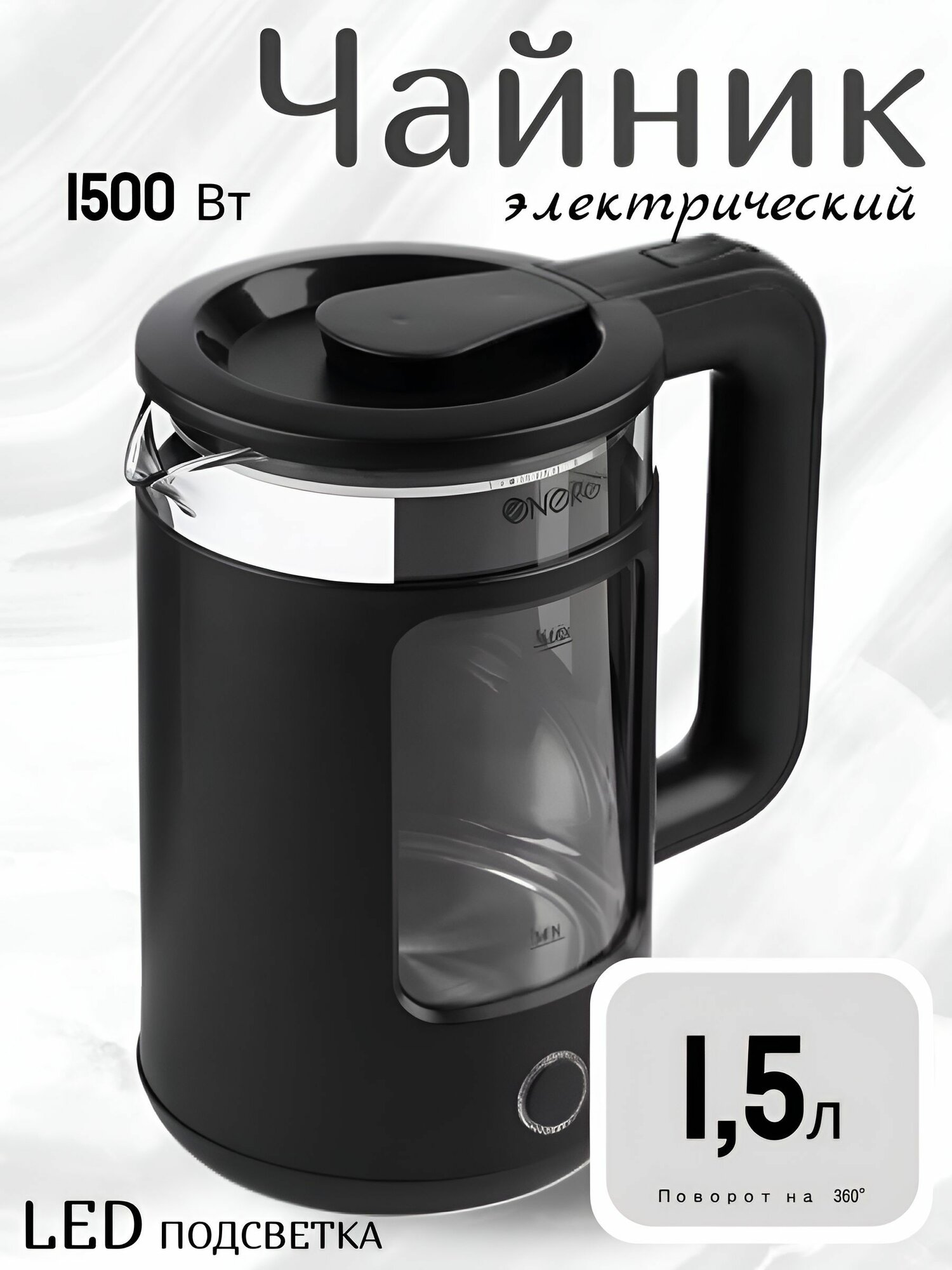 Стеклянный чайник электрический Energy E-256, 1,5 л, пластик черный