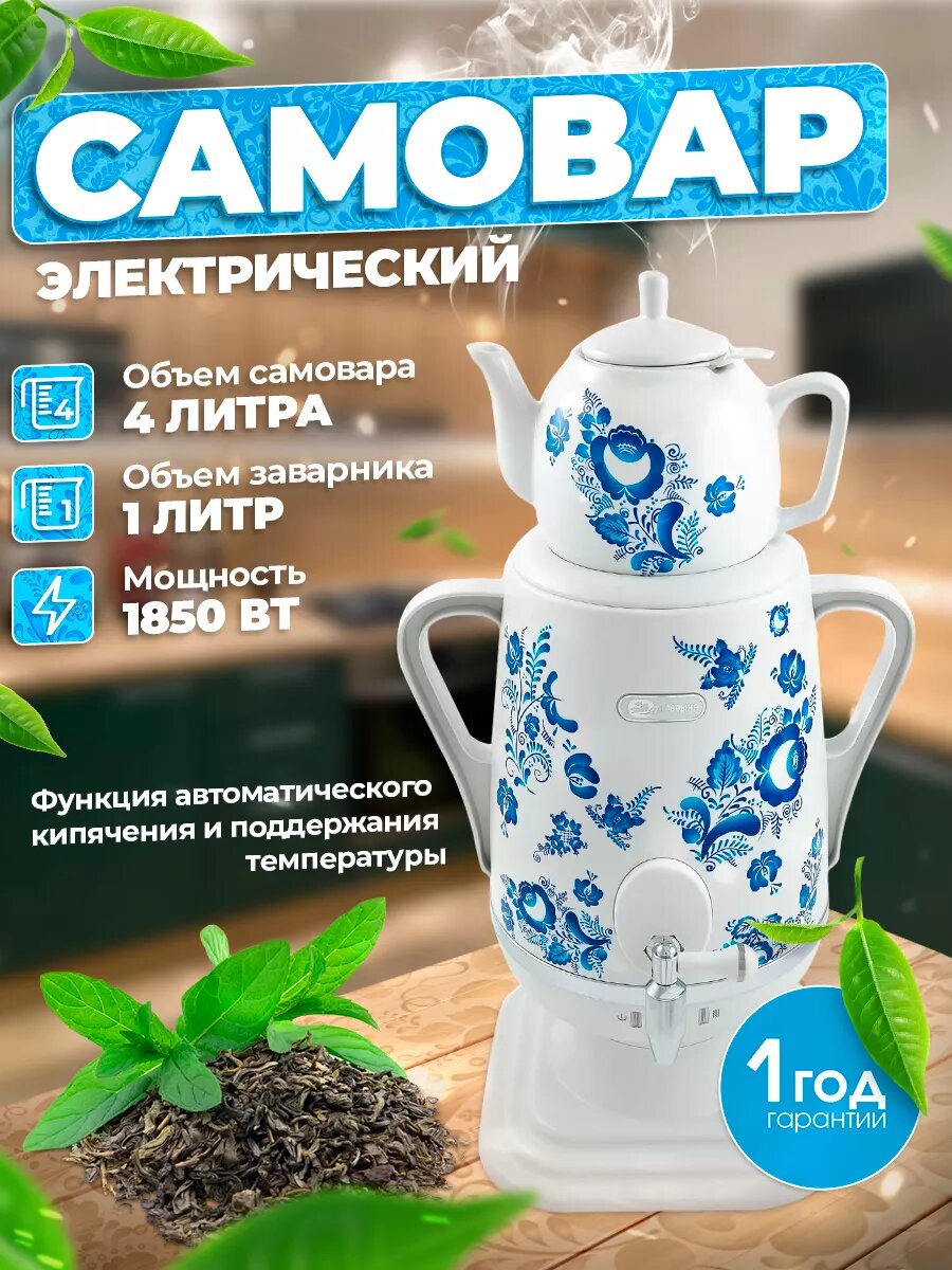 Самовар электрический Добрыня DO-415 (4,0л.) белый/керамический гжель