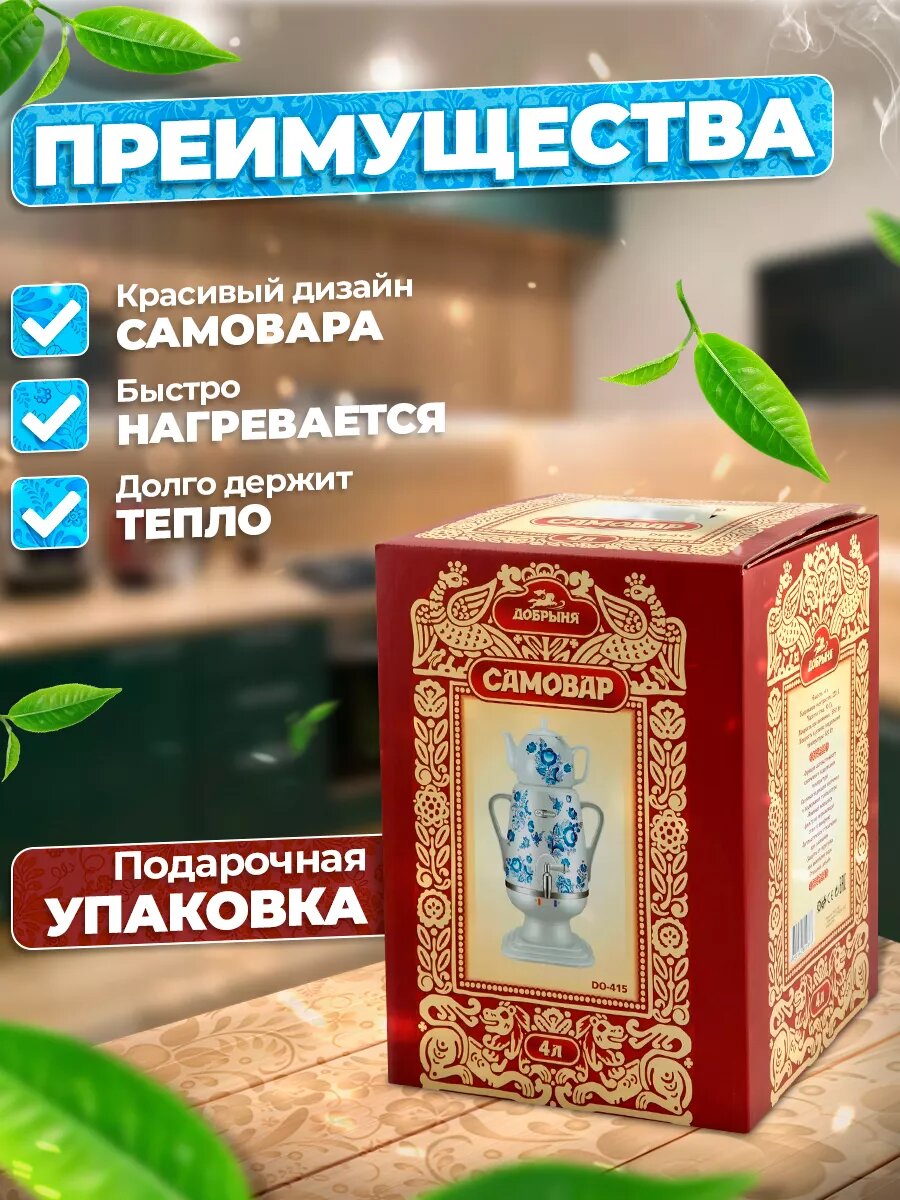 Добрыня Самовар DO-415 (4,0л.) бел/керам.з.(1л) гжель