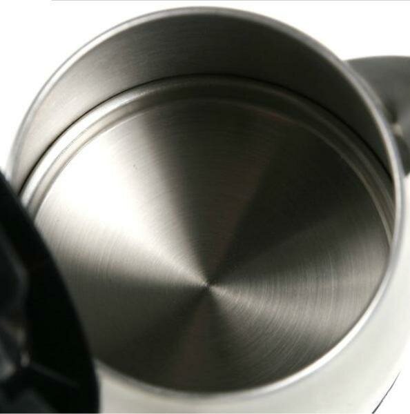 | Минусы: | Нет базы, т.е. нагревательный элемент встроен в сам чайник, отсюда небольшое неудобство в использовании: не комфортно переносить полный чайник с болтающимся шнуром. |
