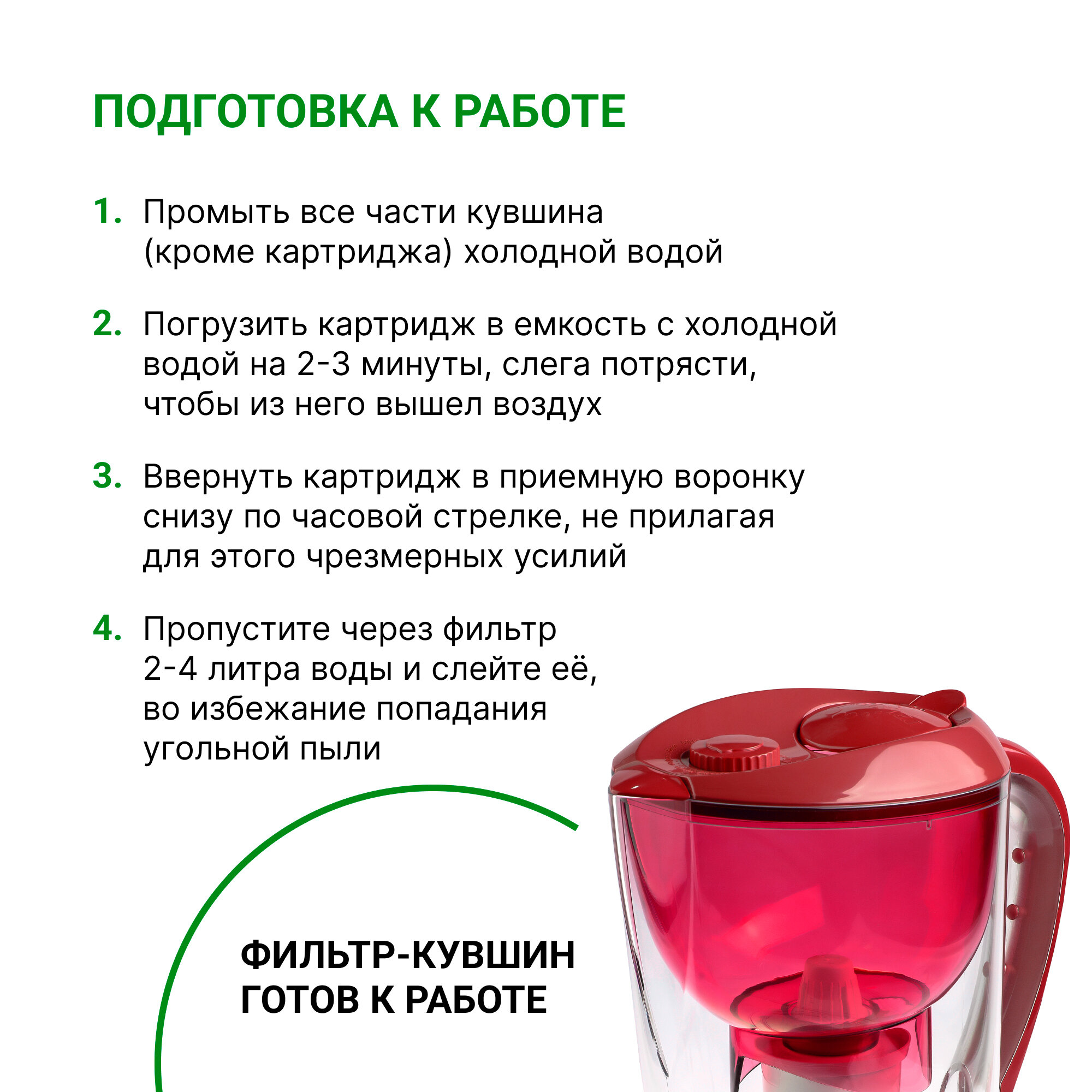 СохранитьФильтр-кувшин Гейзер Аквариус, красный, объем 3.7 л, картридж с материалом Каталон, 62025 интересное: