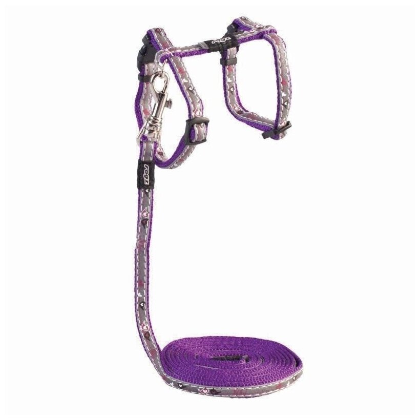 Купить Rogz Комплект для кошек поводок и шлейка размер XS серия Night Cat Длина 180 см, фиолетовый