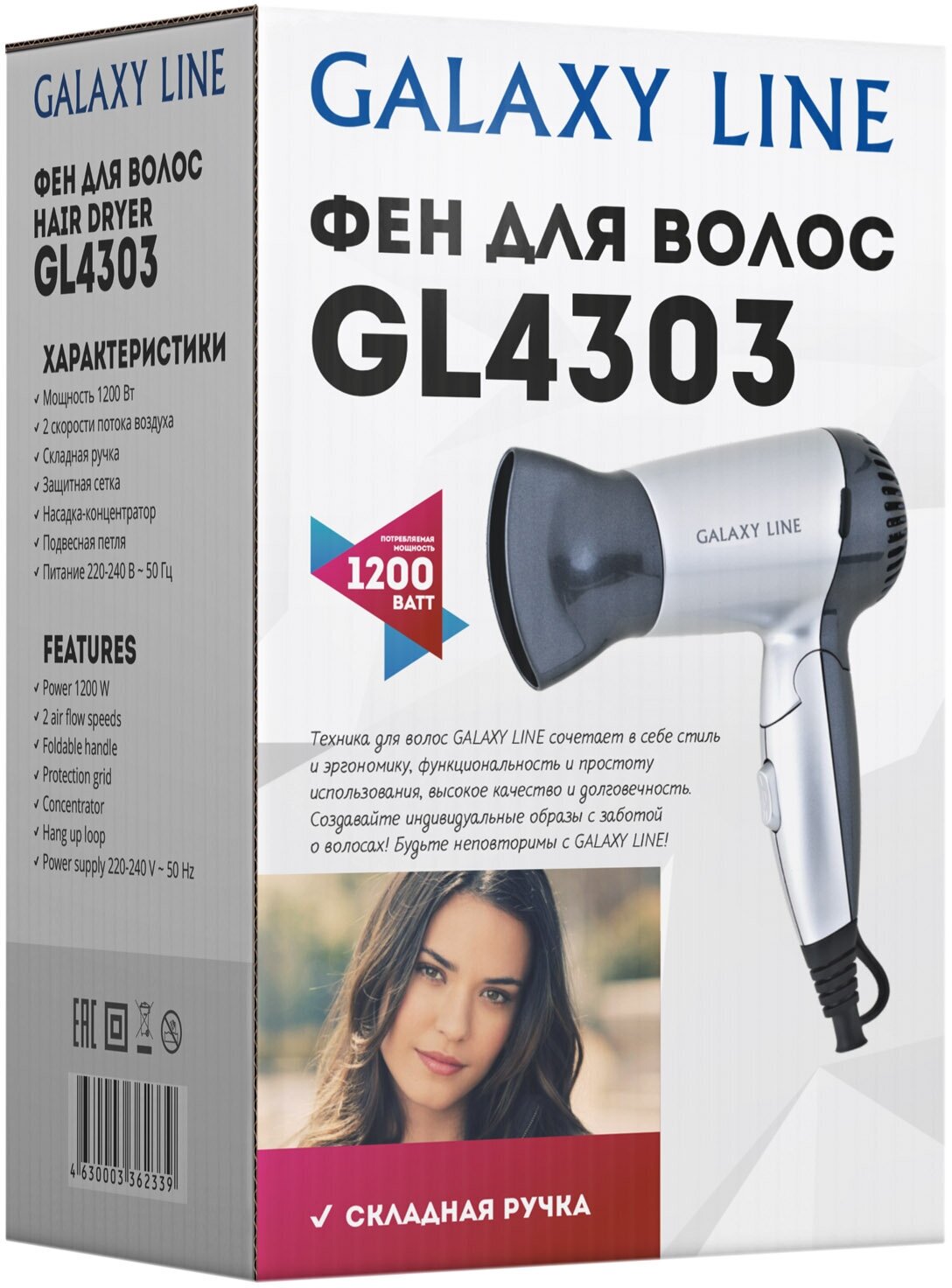 Купить Фен для волос GALAXY LINE GL4330 GL4330RU, мощность 1200Вт, складной, с концентратором