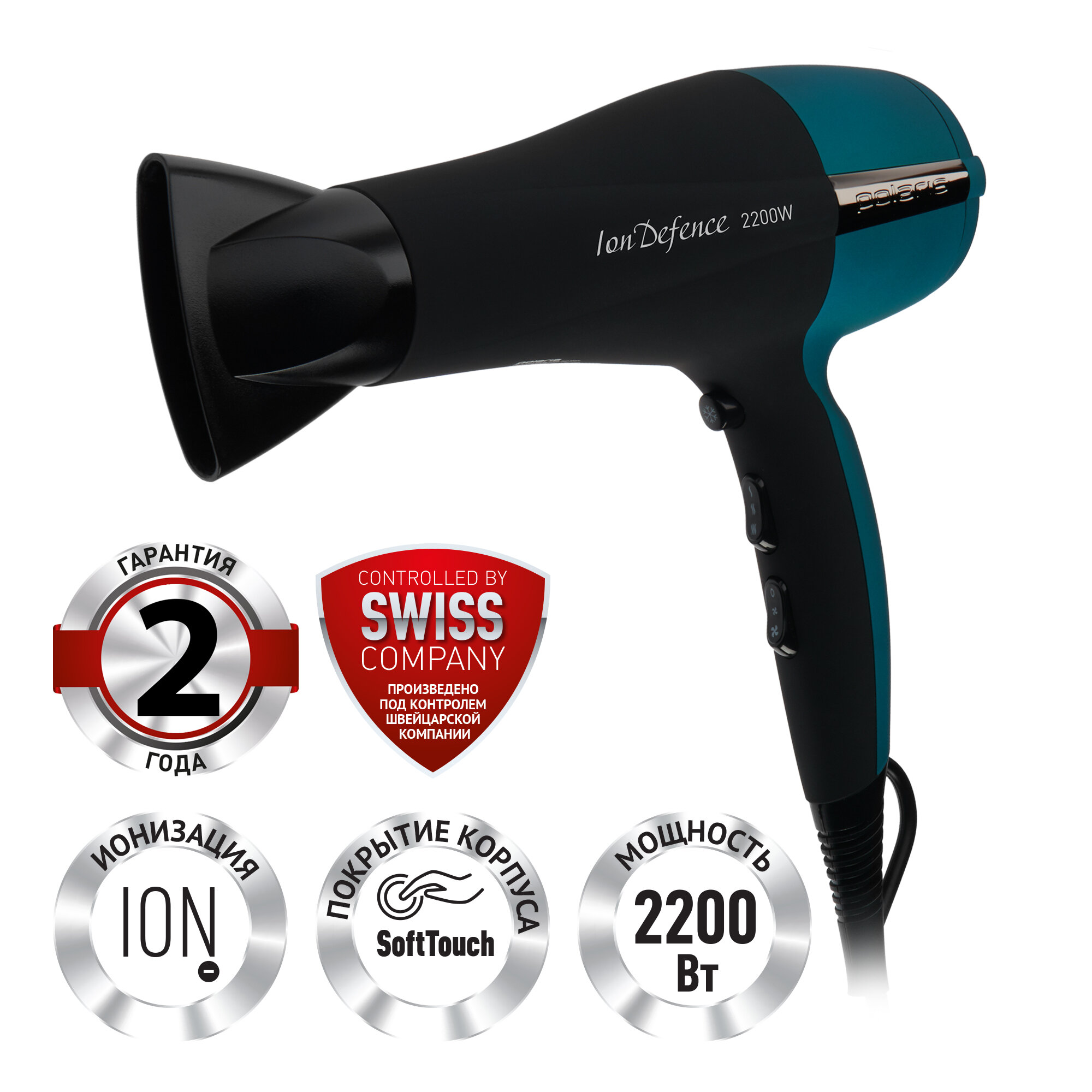 Фен POLARIS PHD 2245Ti, 2200Вт, 2 скорости, 3 температурных режима, ионизация, морская волна, 07862