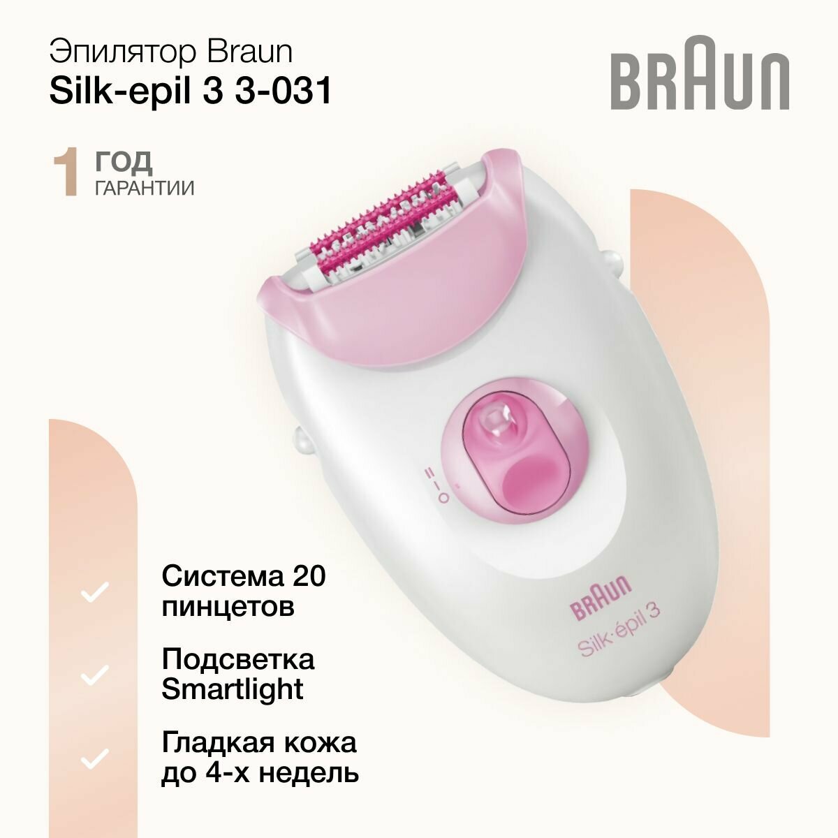 Купить Женский эпилятор Braun Silk-epil 3 3-031 с 2 режимами скорости, подсветкой, массирующими роликами, белый/розовый