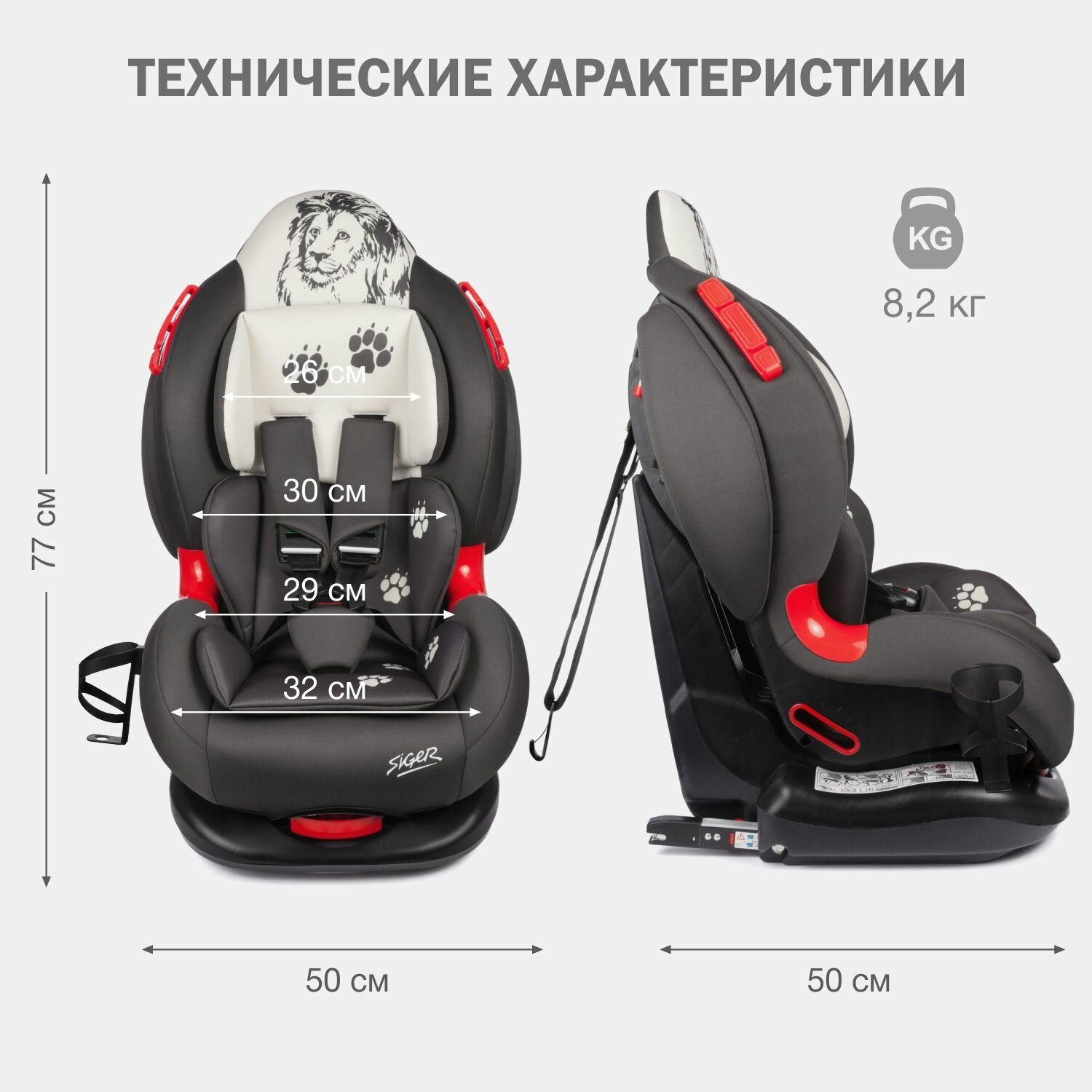 Автокресло детское Siger Кокон от 9 до 25 кг, цвет бежевый, лев серый интересное: