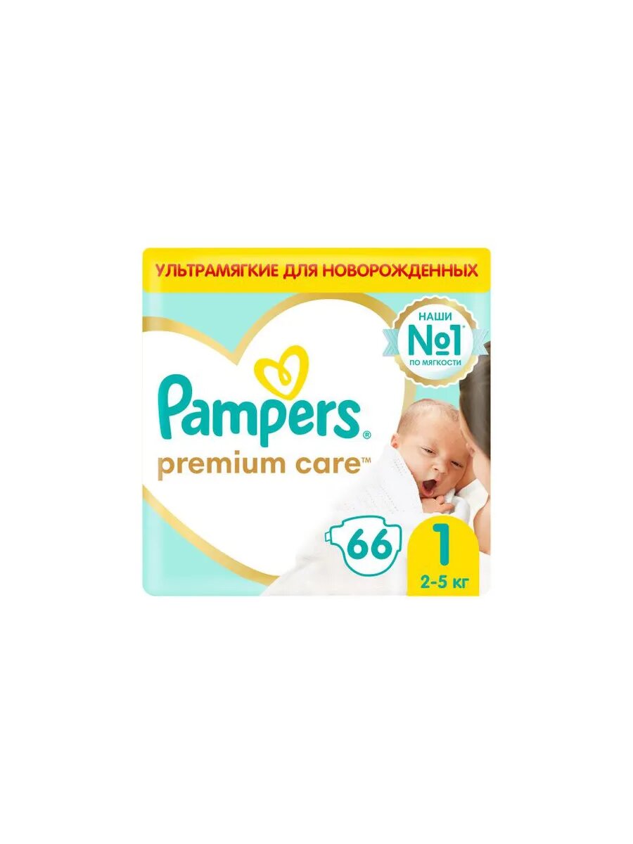 Подгузники Pampers Premium Care для малышей 2-5 кг, 1 размер, 66 шт