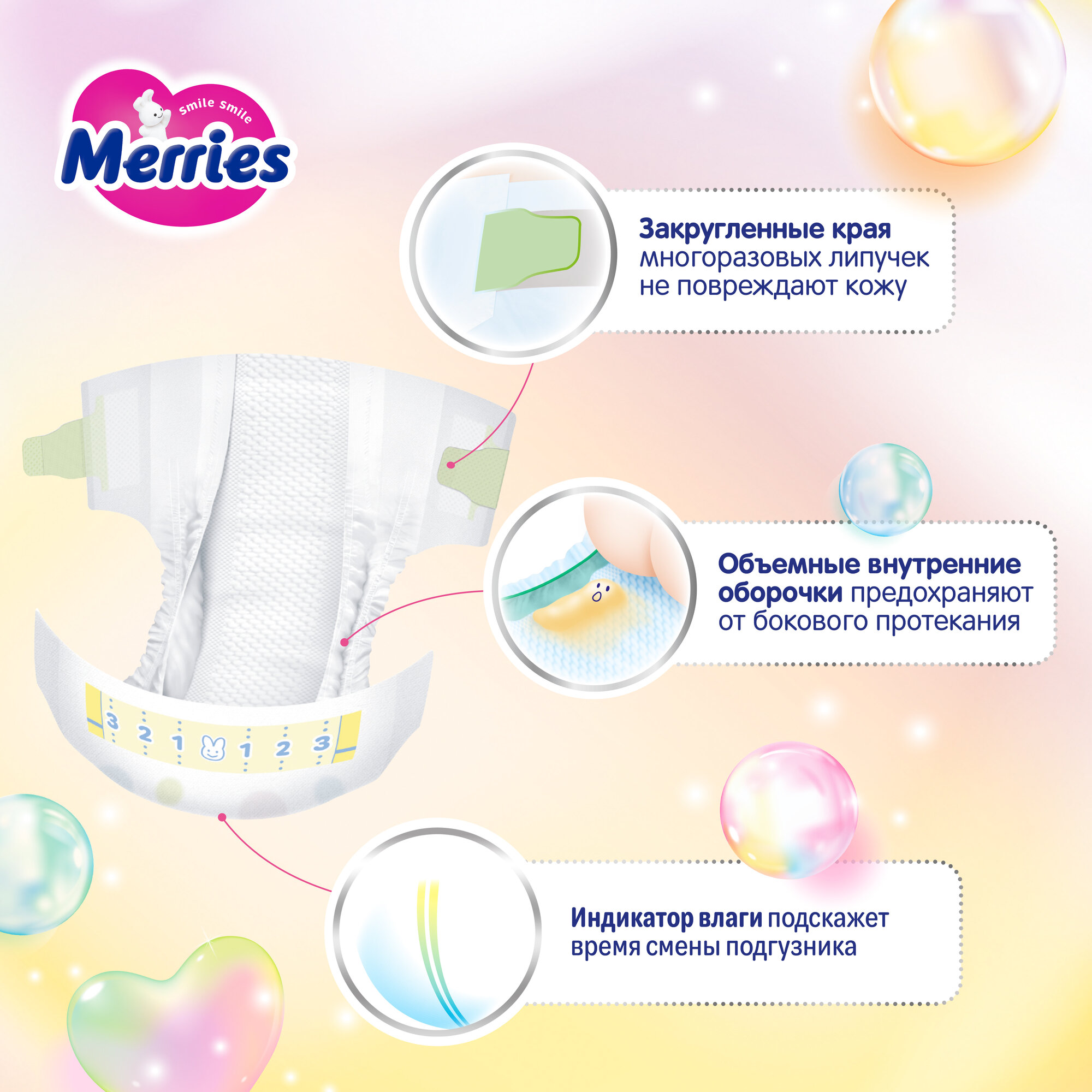 | Плюсы: | С первым ребенком всегда покупали мерис так как дышат, отлично работает индикация и жидкость уходит вглубь а поверхность с кожей сухая. |