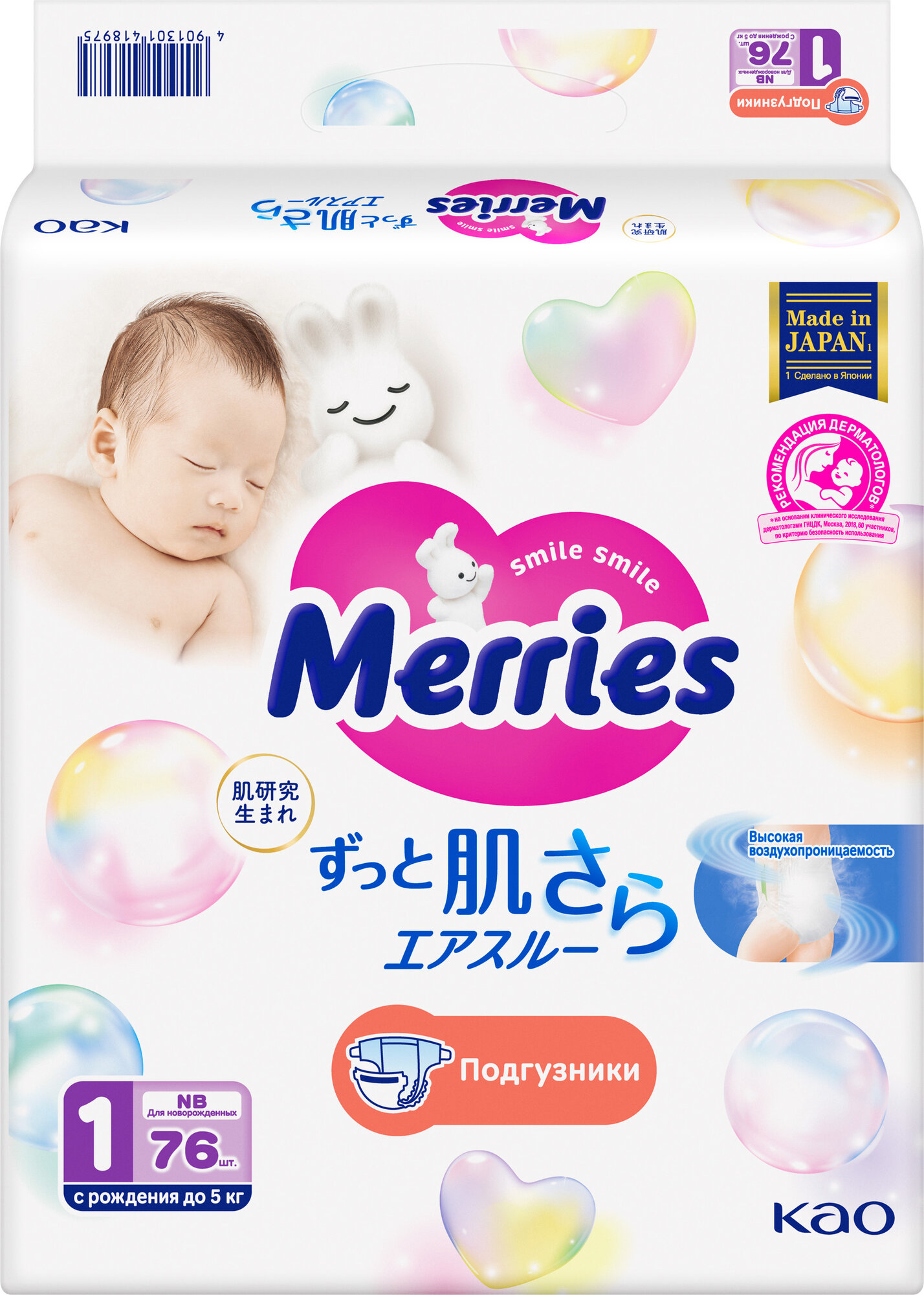 Подгузники Merries NB (0-5 кг), 90 штук