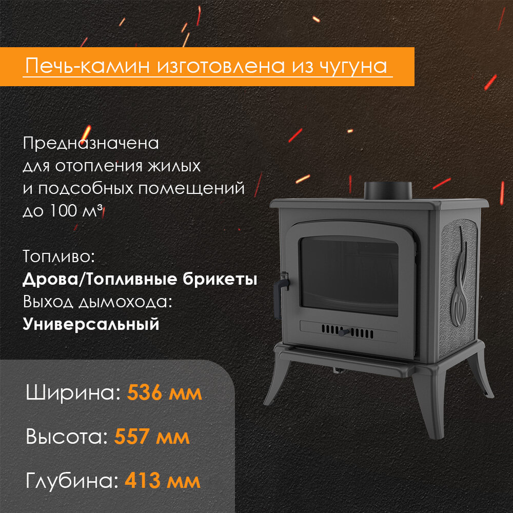 При горении нагревается ручка топки печи, её необходимо снимать для комфортного использования. При открытии топки часто зола/угли/дрова вываливаются наружу. Притопочный порожек очень маленький, пришлось под печку, где находится топка, поставить ёмкость железную, чтоб горячие угли и искры не падали на пол |