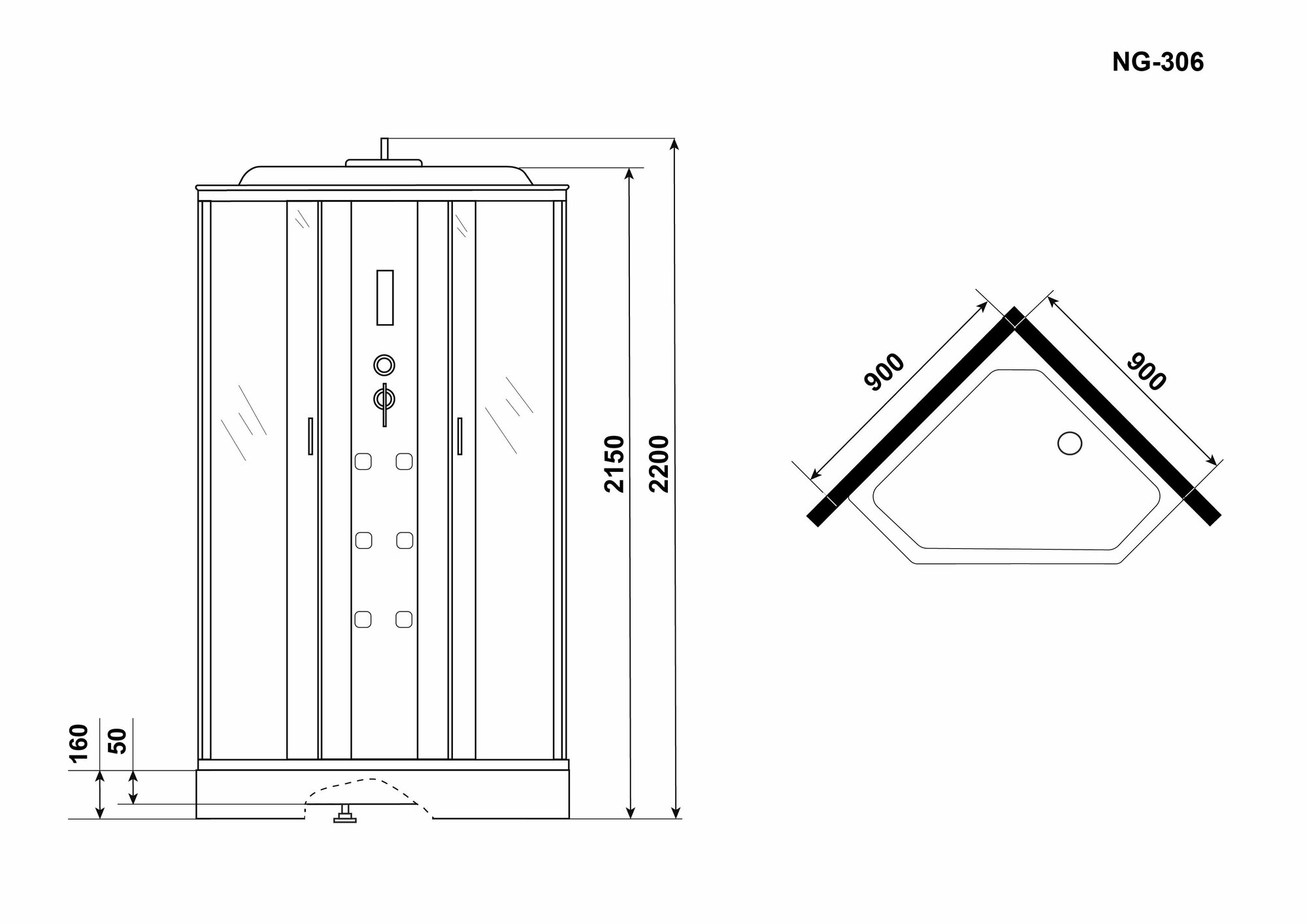 Душевая кабина NG-306-01 (900х900х2200) низкий поддон(16см)