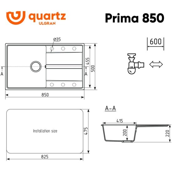 Мойка ULGRAN Quartz Prima 605-03, десерт