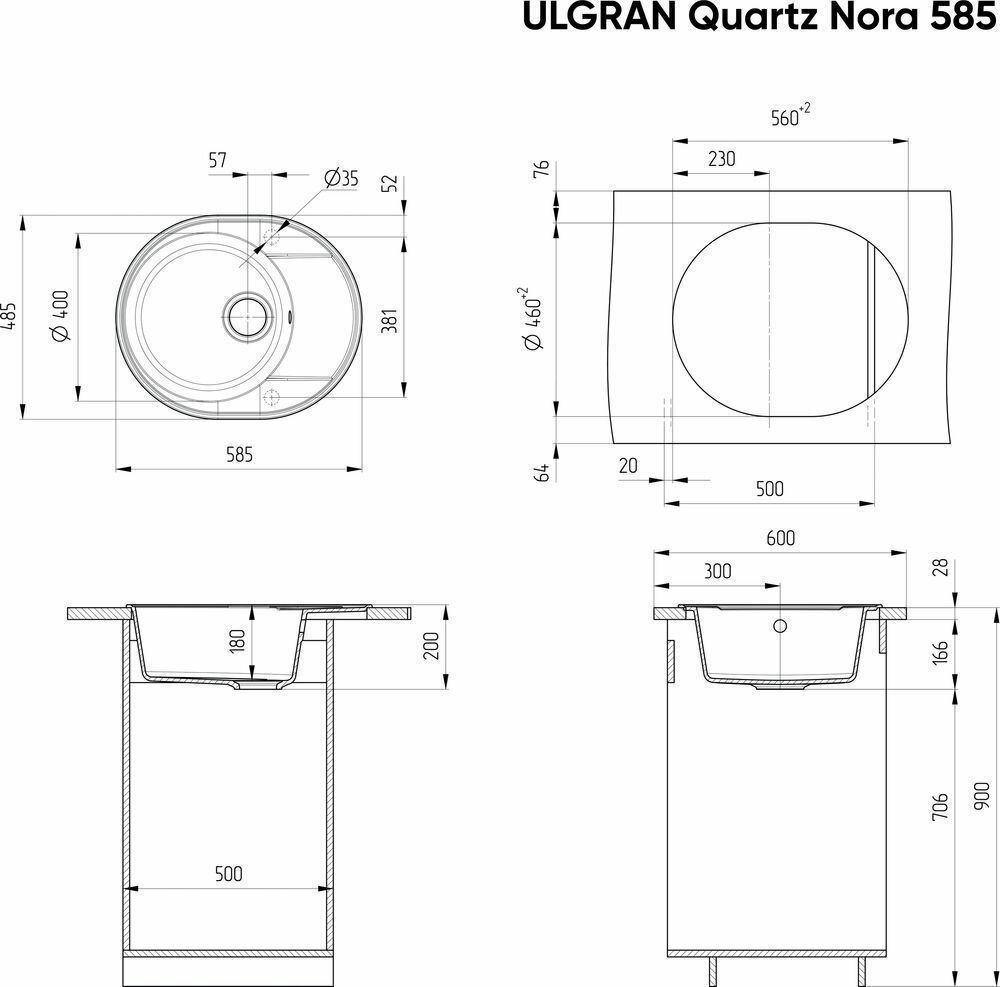 Мойка ULGRAN Quartz Nora 585-03, десерт