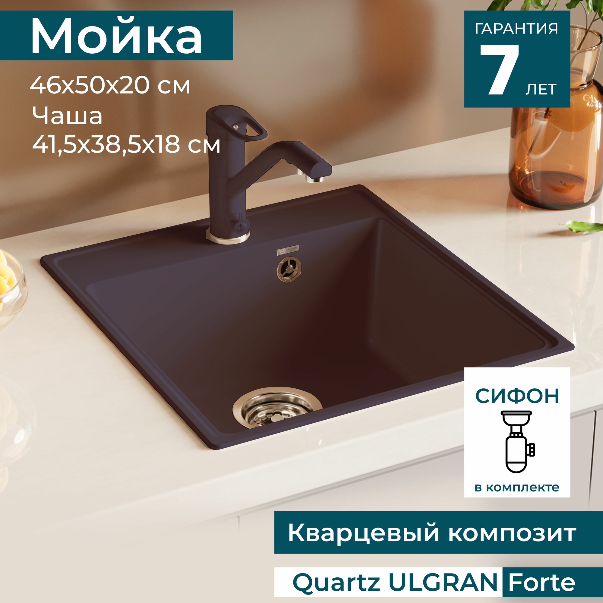 Купить Кухонная мойка Ulgran Quartz Forte 460-06 трюфель