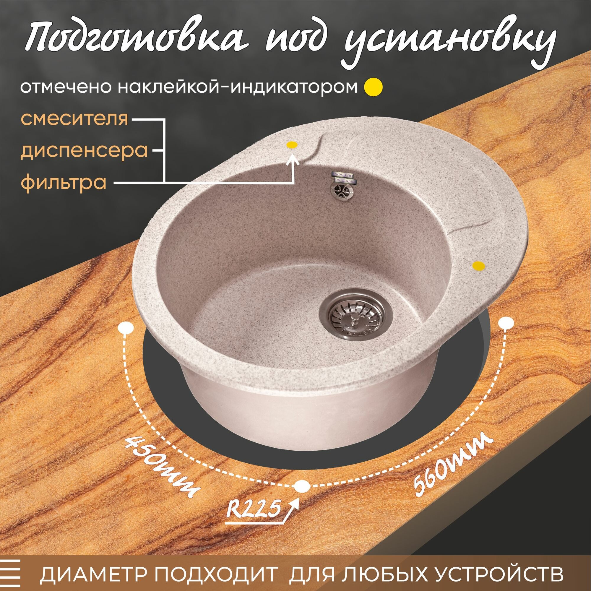 Мойка для кухни врезная каменная Dr. Gans БЕРТА-580, цвет латте, с крылом, овальная, 580х470х217 мм