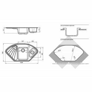 Мойка GRANFEST GF-C1040E 1,5 чаши, угловая 1040*560 мм (черный-308)