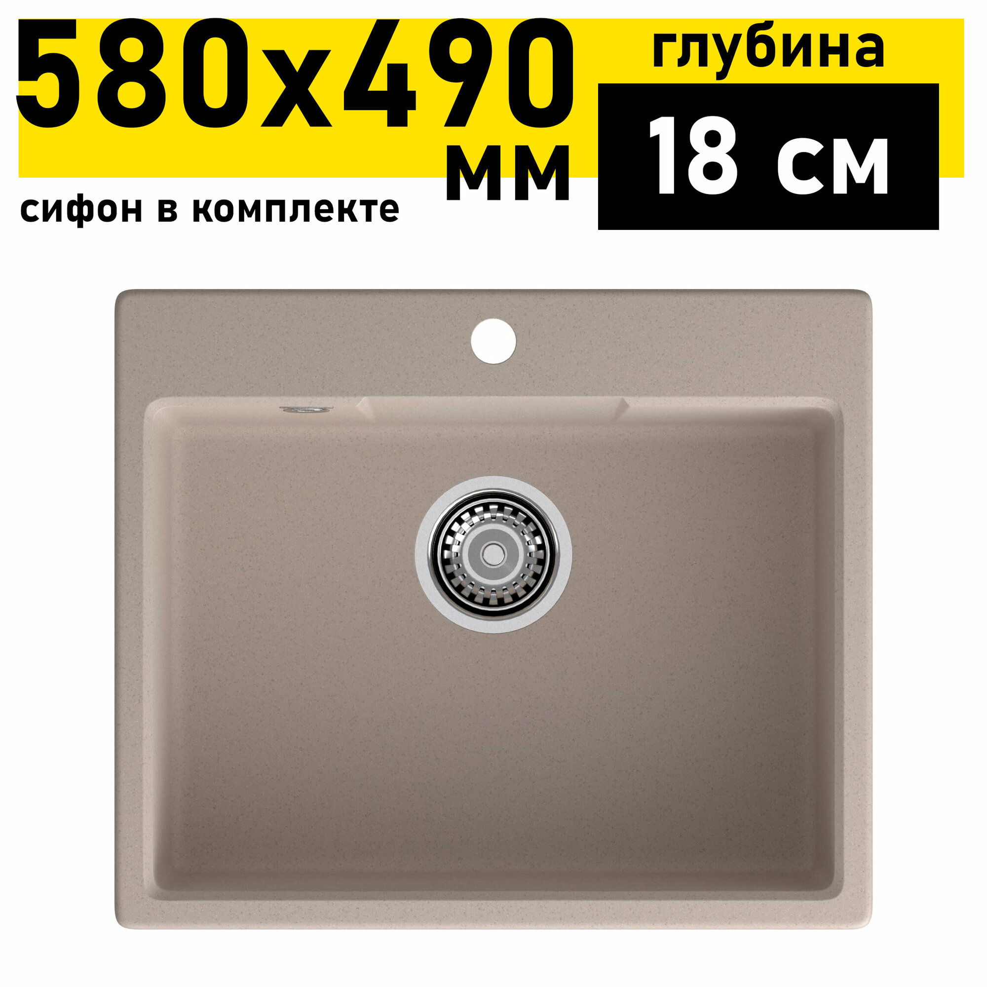 Мойка кухонная врезная, GranFest, Urban, кварцевый песок, 580х490 мм, одна чаша, песочная, GF-UR-658