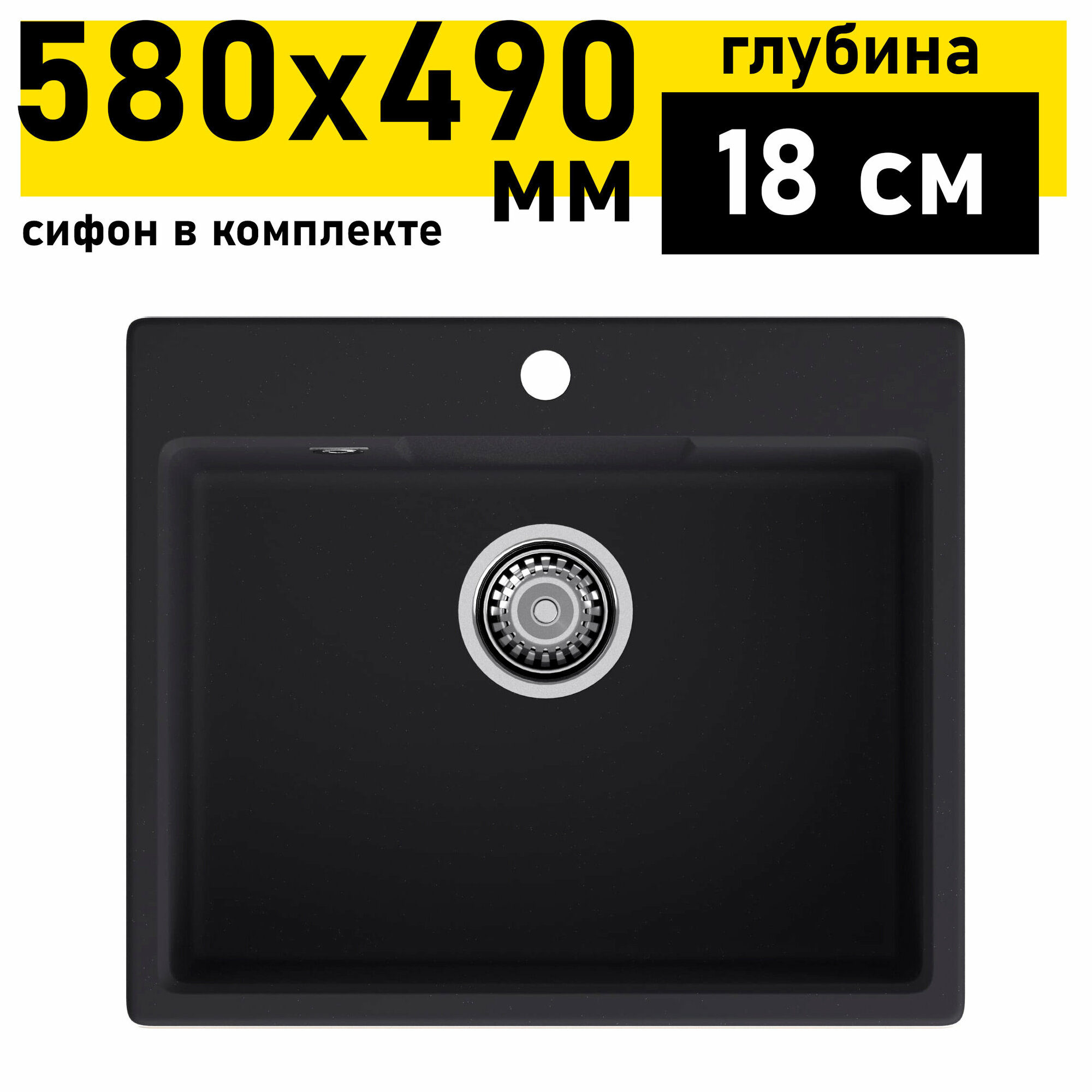 Купить Мойка кухонная врезная, GranFest, Urban, кварцевый песок, 580х490 мм, одна чаша, черная, GF-UR-658