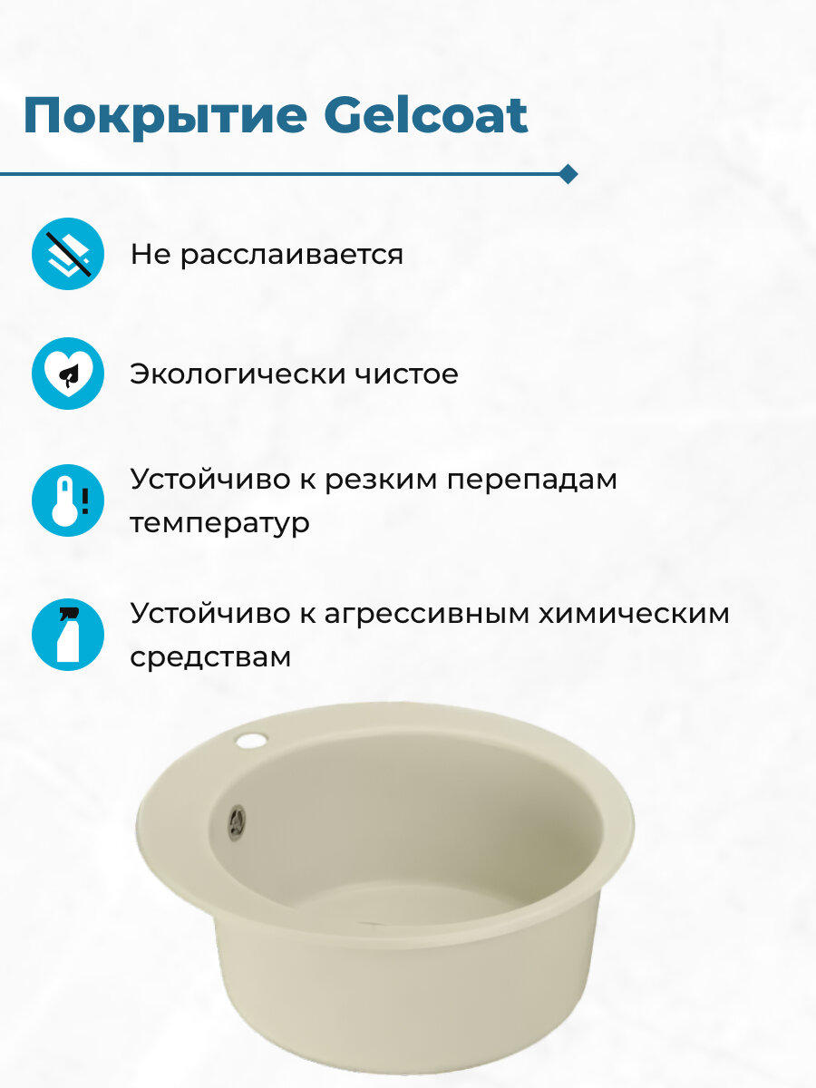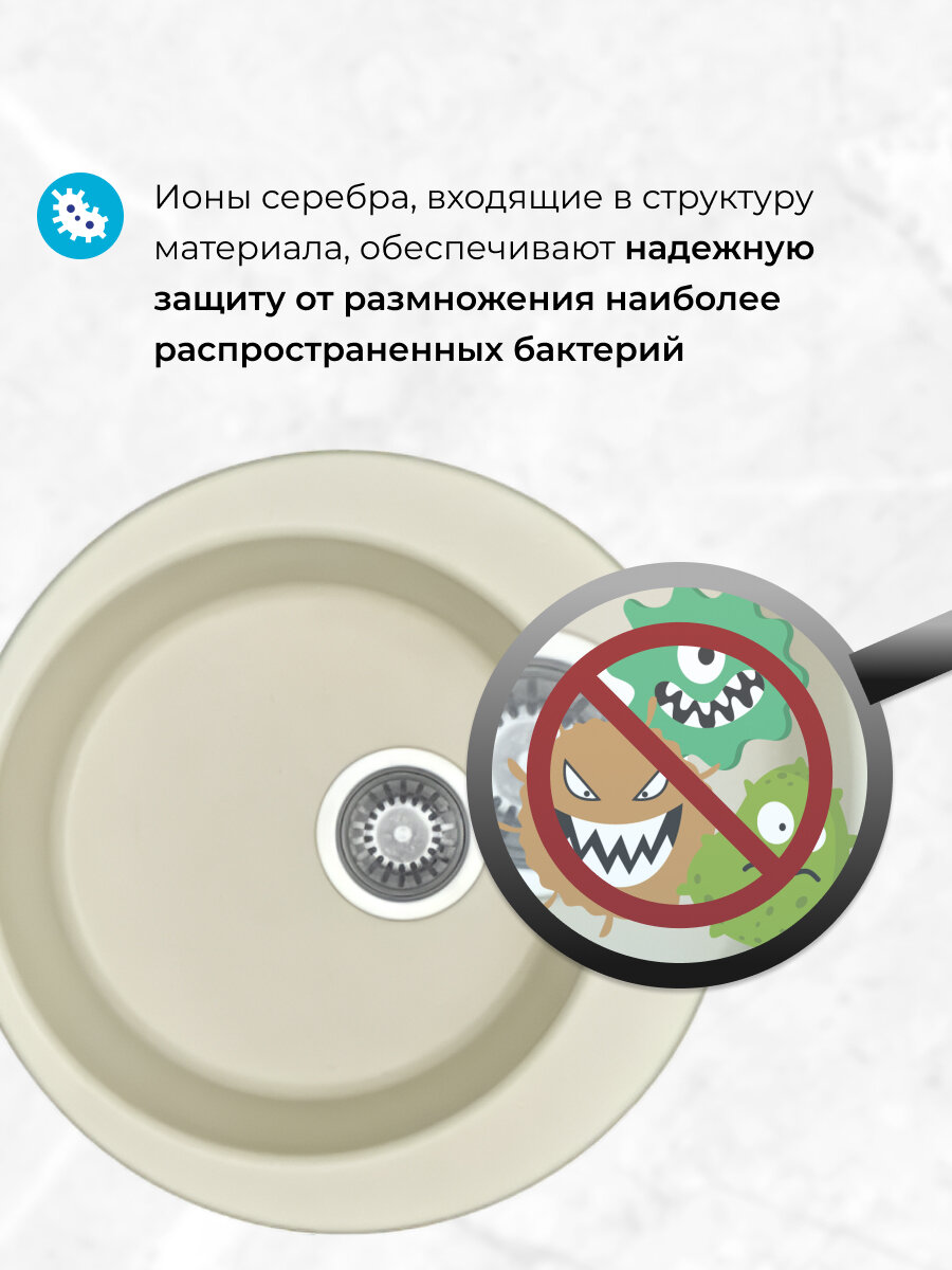 Мойка кухонная Иверия круглая 480мм жемчуг 1A711032IV240