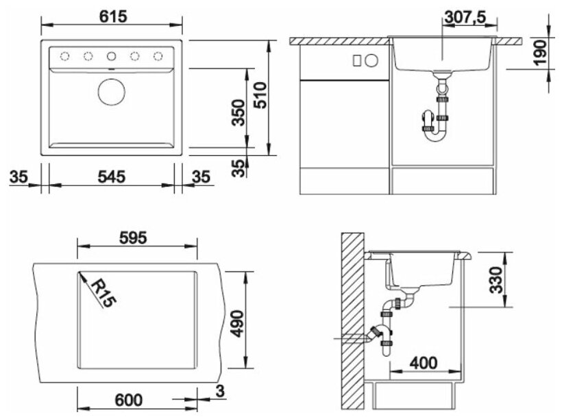 Во-вторых, огромная шикарная чаша. Если шкафы по 60см - то идеальный вариант. Не мельчите, берите большую! Это из главного. Еще плюсы: широкий борт с отверстием под смеситель. Ничего не надо резать самому, плюс туда удобно класть губки/моющие средства. Удобный клапан-автомат (ну это стандарт уже). |