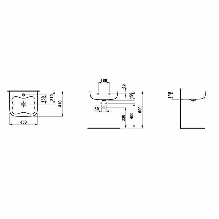Florakids 45х41х14см, подвесная раковина, санфарфор, белая, отверстие для смесителя посредине, с переливом, арт. 8.1503.1.000.104.1, Laufen