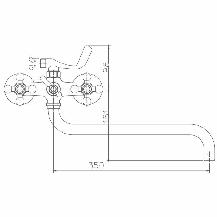Haiba Смеситель для ванны (Lt) трубчатый поворот.излив-S 350мм,двухвент, шаровый.перек, хром, HB2719 (арт. 781043)