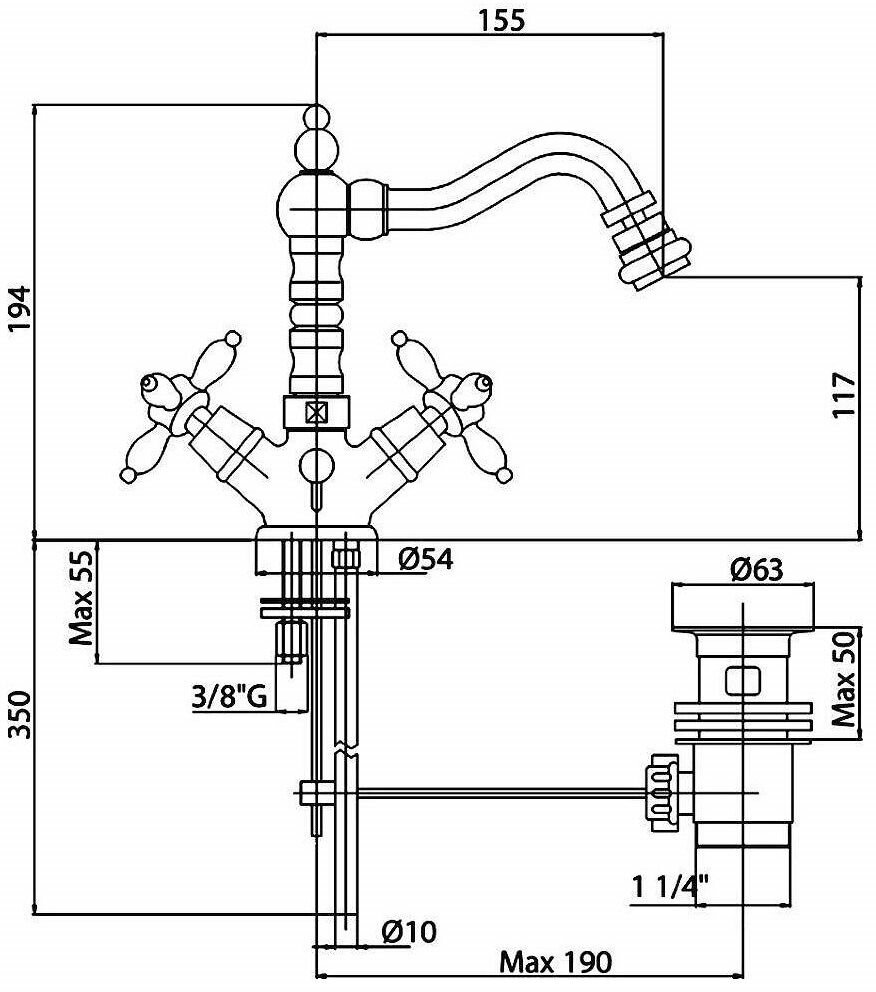 ATLANTIS-NOSTALGIA-BS2-03/24 Смеситель на биде с клапаном, исполнение золото
