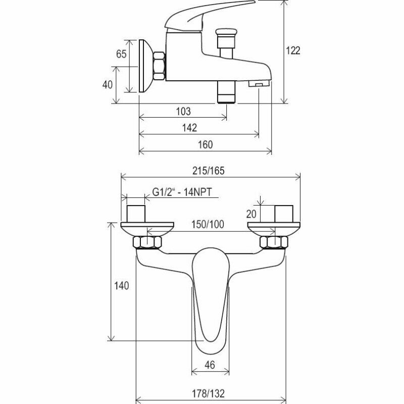 Настенный смеситель для ванной без гарнитуры 150 мм SN 022.00/150