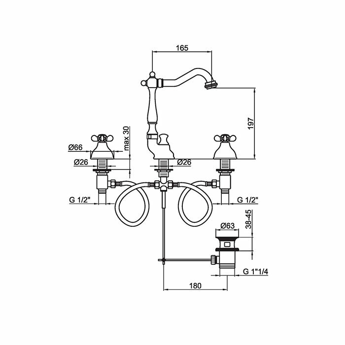 Смеситель для раковины Webert OTTOCENTO хром bath 3 отв. OT750202015 40203