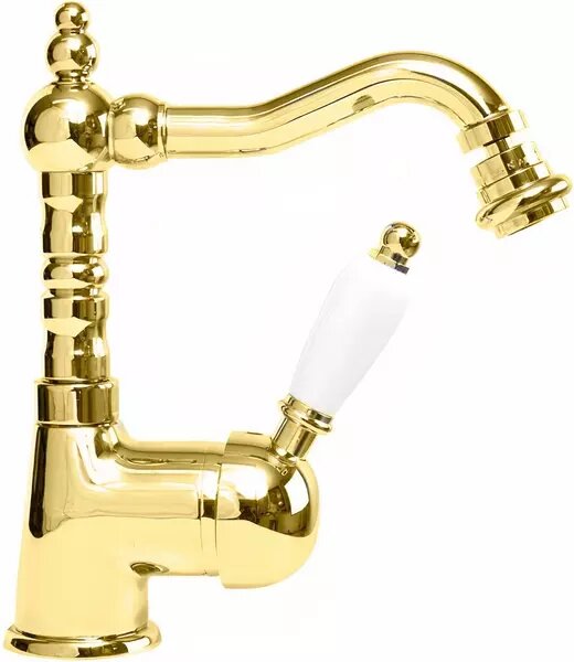 Смеситель на биде однорычажный c донным клапаном, исполнение золото, ручка белые Cezares ELITE ELITE-BSM2-03-Bi