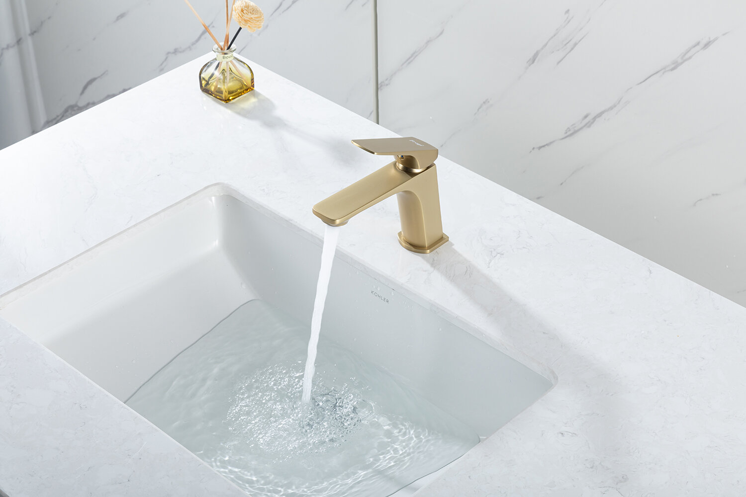 Купить Смеситель для раковины FRAP F1087-3 золотой сатин, латунь, фиксированный излив, управление рычажное