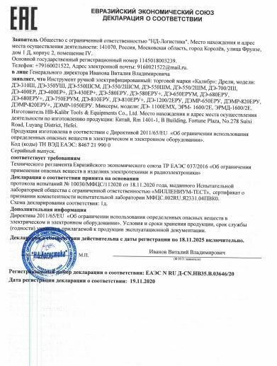 Дрель-шуруповерт калибр ДЭ-550/2ШМ Мастер