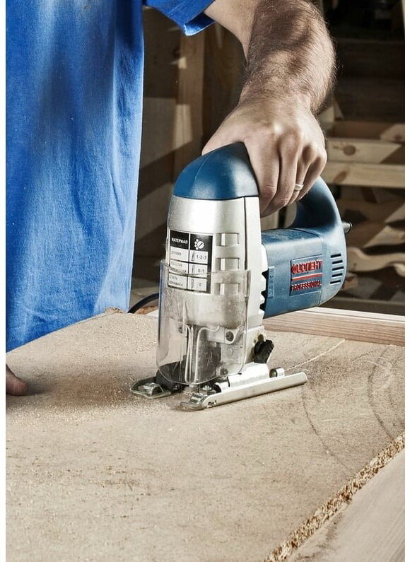 | Минусы: | Пилит криво из-за чудовищной вибрации – пилку уводит в сторону от линии, подошва гнется при малейшем нажиме, быстрозажимного крепления пилок нет, сдув опилок никакой – постоянно приходится очищать ветошью, вязнет в плотном дереве |