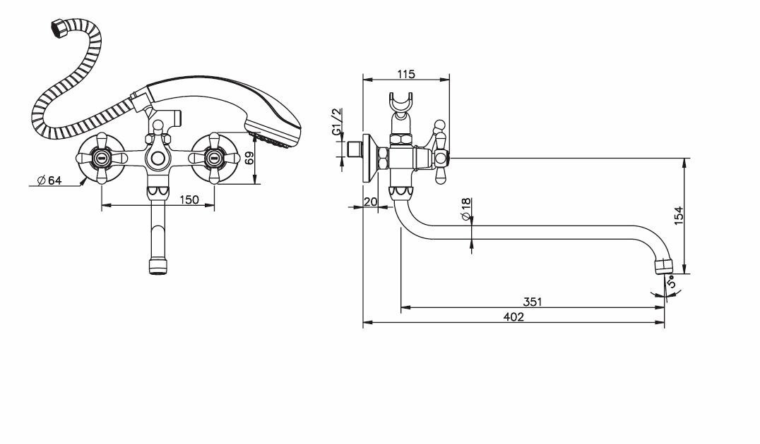 Смеситель для ванны и душа ESKO VIENNA (VN 31-2)