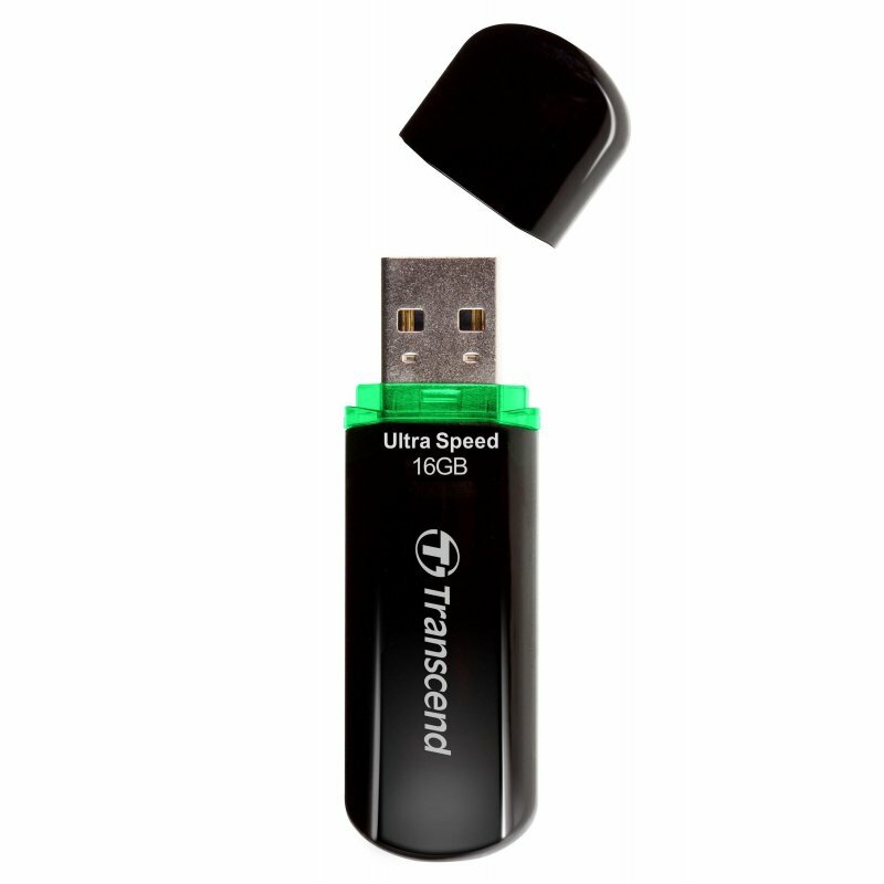Флешка Transcend JetFlash 600 16 ГБ, 1 шт., черный/зеленый