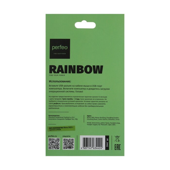 Мышь компьютерная PERFEO (PF-3442) RAINBOW, черный/зеленый 984707